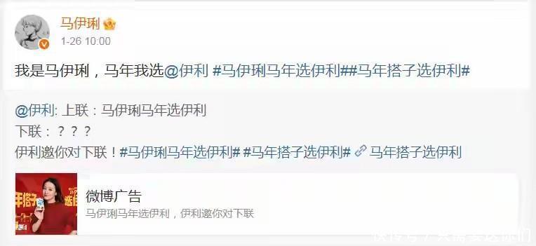 再看马伊琍,现在可顺了,接了伊利的代言,马年选伊利,多吉利
